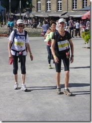 Pause d'une heure mais seulement 10 mn sur le lit de camp; Ravito amélioré, en plus du nouilles-jambon règlementaire on avait droit à la purée de pomme de terre. Bien;;; mais Dédé ne mangeait pas, il s'inquiétait seulement de savoir s'il y avait du coca Au départ de Loc... je craignais le soleil mais à CRACH nous avons eu des chemins creux encore humides et frais et ombragés. donc sans encombre on arrive à Auray/St Goustan vers 18h15 J'ai dit sans encombre, mais si, 3 km après notre départ de Loc... Hénia nous a rattrapées. Elle était alitée à la pause sans qu'on le sache. Donc 6 maintenant à St Goustan, mauvaise idée pour le ravito, en plein soleil, ils l'ont changé de rive parait-il pour un raccord au réseau d'eau potable.